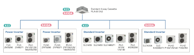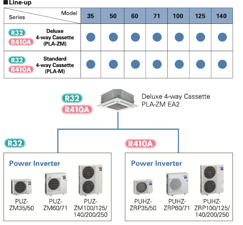 For users seeking even further energy savings, Mitsubishi Electric now offers deluxe units (PLA-ZM) to complete the line-up of models in this series, from 35-140. Compared to the standard models (PLA-M), deluxe models provide additional energy savings, contributing to a significant reduction in electricity costs.