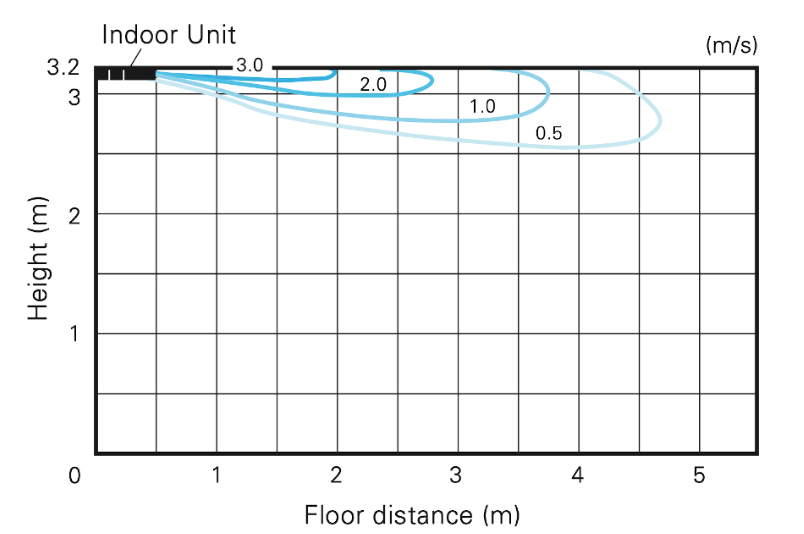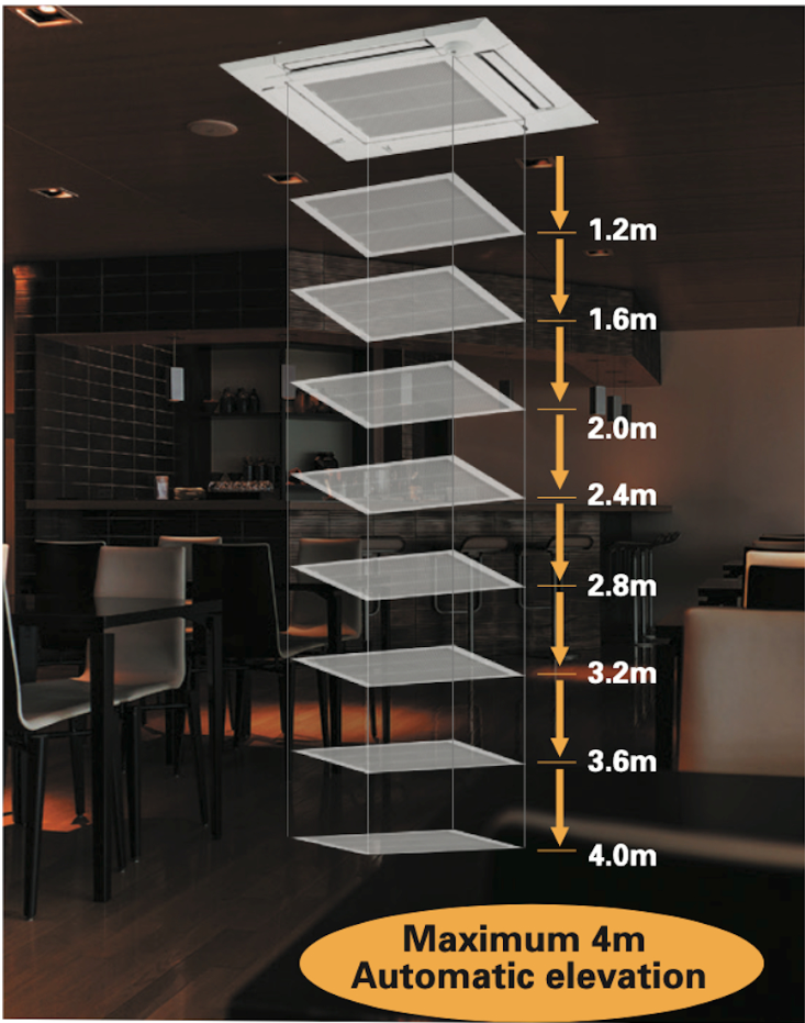 The new airflow control removes that uncomfortable drafty feeling with the introduction of a horizontal airflow that spreads across the ceiling. The ideal airflow for offices and restaurants.