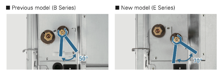 The top and bottom positions of the liquid and gas pipes have been reversed to allow the gas pipe work, which requires more effort, to be completed first. Further, through structural innovations related to the space around the pipes, the area where the spanner can be moved has been increased, thus improving liquid pipe work and enabling it to be completed smoothly.
