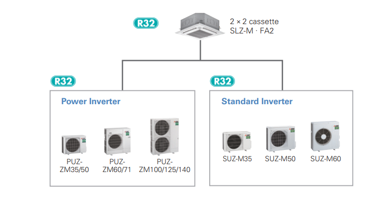 Although SLZ models of past series were only compatible with standard inverter outdoor units, it is now possible to connect them to power inverter series outdoor units.