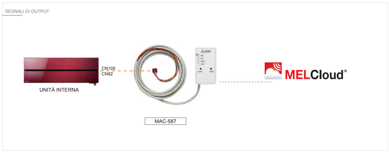 The wi-fi interface, communicates status information and controls commands from MELCloud by connecting to an indoor unit.