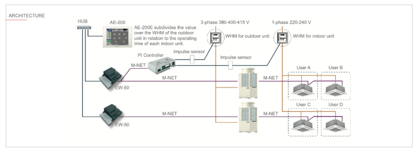 The M-Net interface model PAC-YG60MCA is a device for acquiring digital meters with pulse output, to be installed on the wall or in the control cabinet.