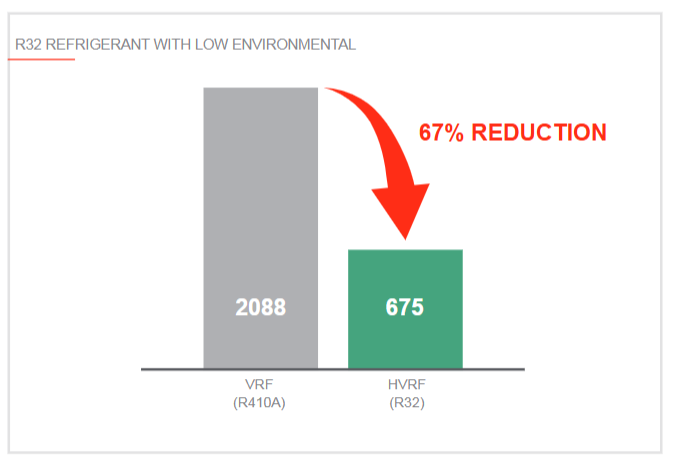 Y HVRF systems are environmentally friendly with a significant reduction in CO2 equivalent, thanks to the 'use of R32 refrigerant gas, with low GWP.