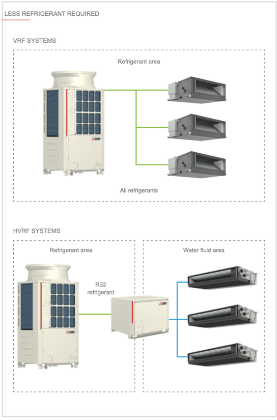HVRF Hydronic systems are VRF derived and as such bring with them the advantages of simplified design and sizing defined by Mitsubishi Electric rules.