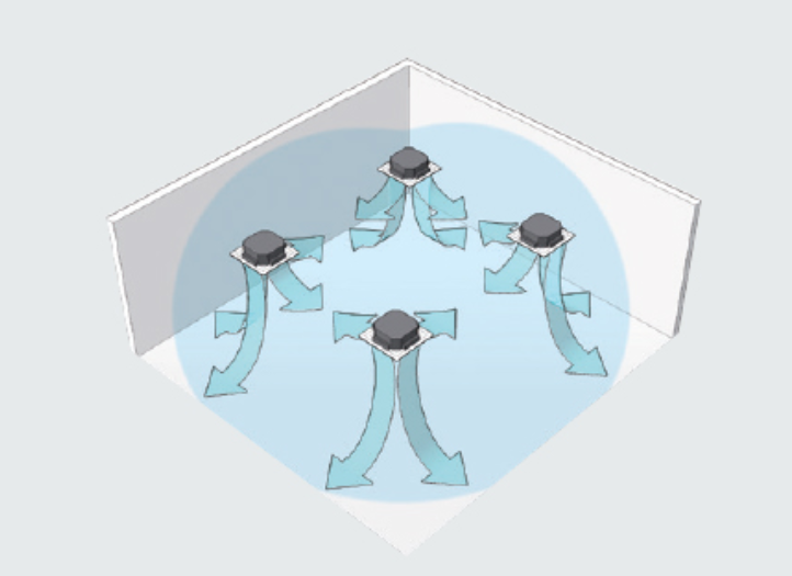 The 4-way cassette VBM model is the ideal solution for applications with ceilings up to 4.2 m high.
