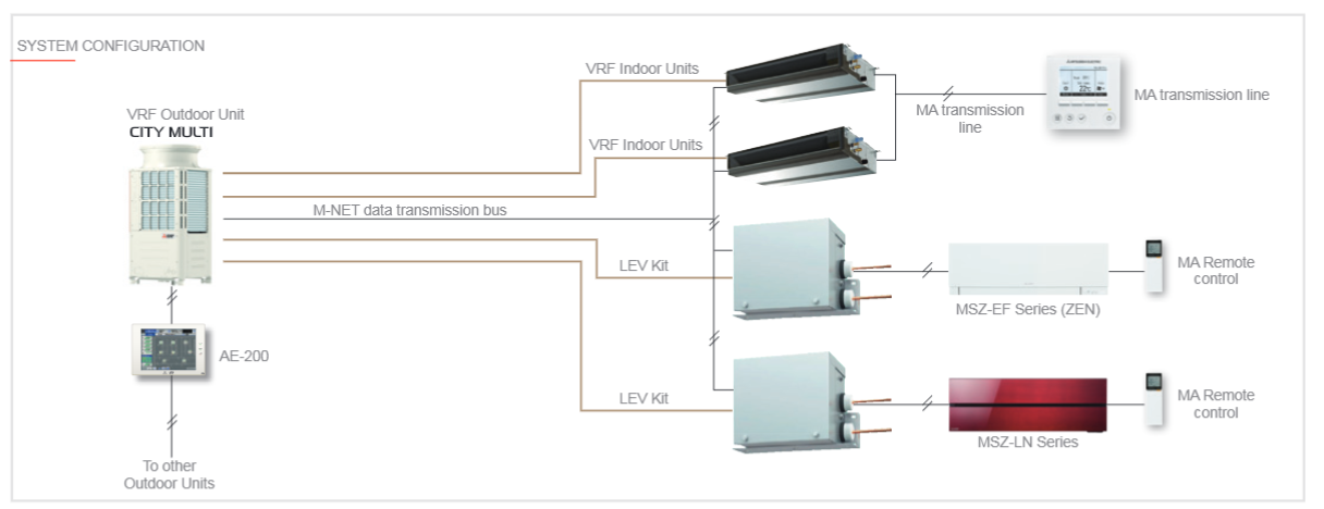 The LEV Kit is the tool designed by Mitsubishi Electric to maximize the versatility of VRF systems: you can now take advantage of standard VRF indoor units and units from the Residential catalog. Don't give up anything, don't give up beauty!