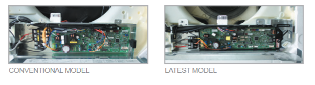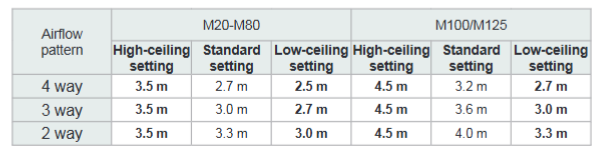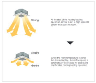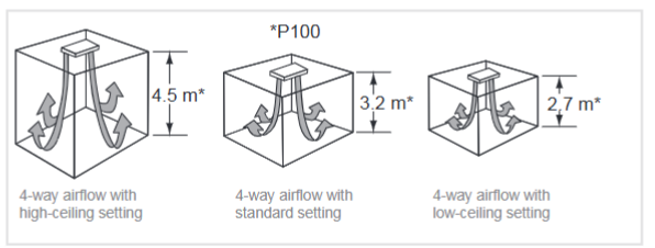 The units have different modes for use with a high or low ceiling, allowing the volume of airflow to be varied to suit the height of the room. Being able to choose the optimal volume helps optimize the perception of air throughout the room.