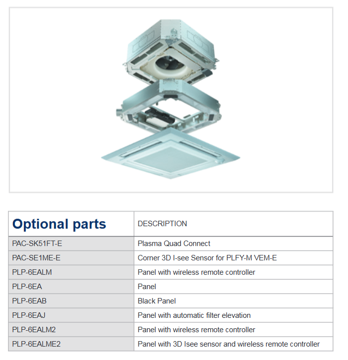 The optional Plasma Quad Connect PAC-SK51FT-E can be installed on indoor units.