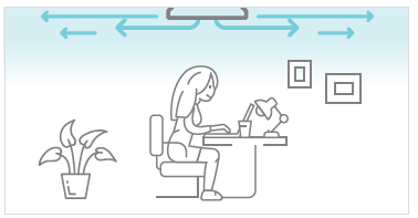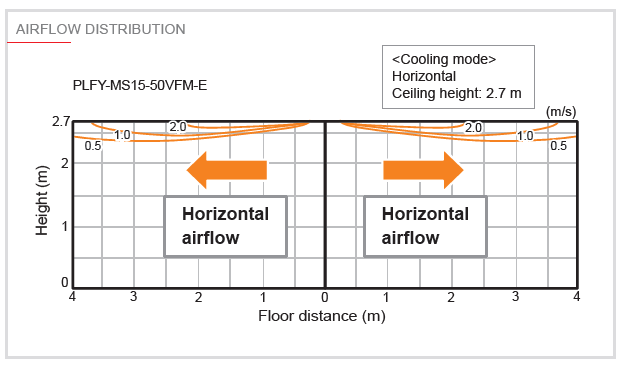 Supply air is horizontally fed into the room to reduce the cold draft feeling. This airflow is ideal for offices and restaurants.