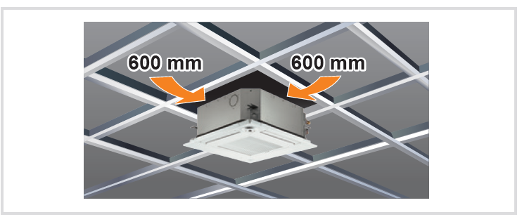The square design matches 2 × 2 (600 mm × 600 mm) ceiling construction specifications. Direct line-based square design enables designs of system