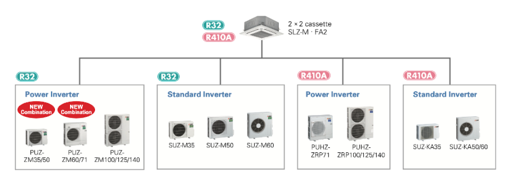Although SLZ models of past series were only compatible with standard inverter outdoor units, it is now possible to connect them to power inverter series outdoor units.