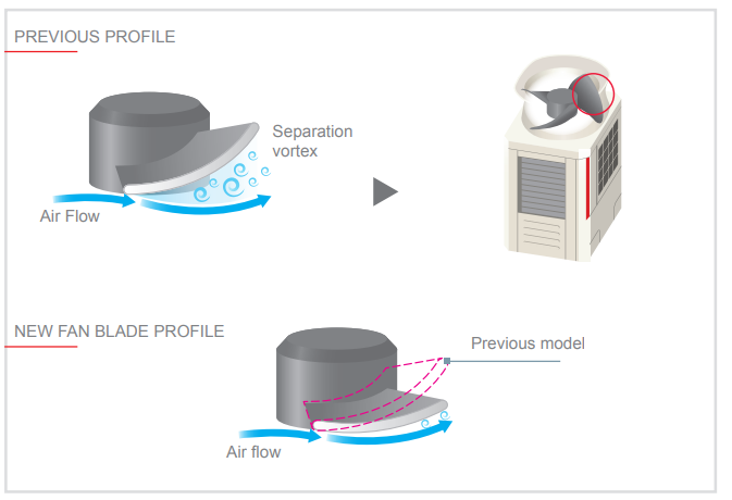 The YNW series fan has been completely redesigned to match the new four-sided battery. The profile of the fins has been optimised to minimise fluid flow losses.