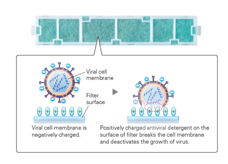 stamp covidThe V Blocking filter system inhibits 99% of suspended harmful substances: viruses, bacteria, molds and allergens. The antiviral effect is provided by an electrostatic filter and a fabric-nonwoven filter system to effectively capture and remove small particles in rooms.